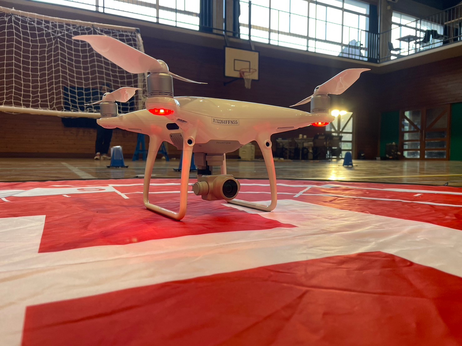 体育館を丸ごと転用全天候型屋内飛行場完備だから講習効率抜群です 栃木県鹿沼市の旧鹿沼市立久我小学校の体育館を活用し大空間を贅沢に使った当スクールは、初心者でもリラックスして講習に臨めると高い評価をいただいています。天候に左右されない飛行講習が可能なのはもちろん、静かで自然豊かなロケーションも、当スクールの大きな魅力の一つです。